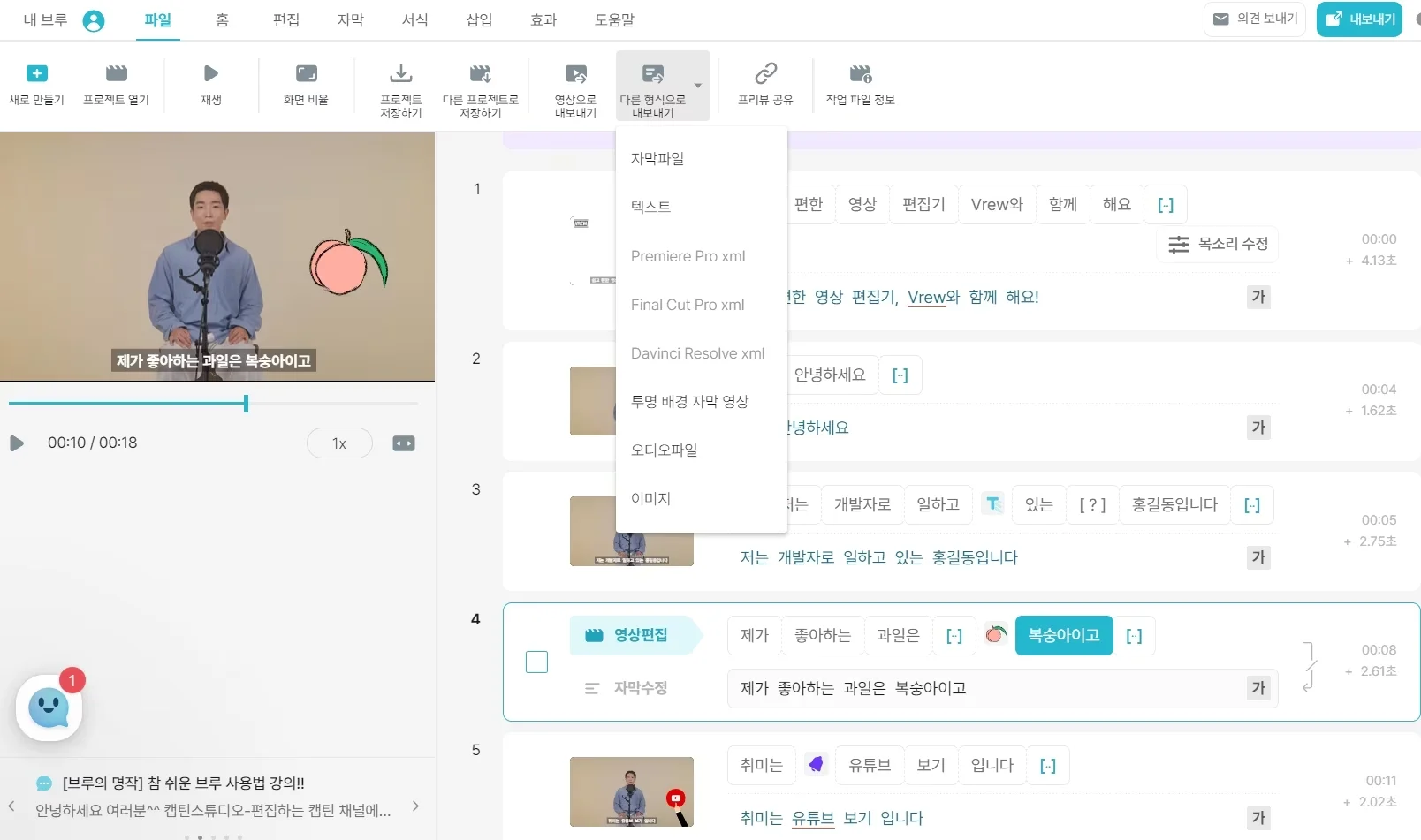 자동 자막, 번역, 편집까지 한 번에 가능하고